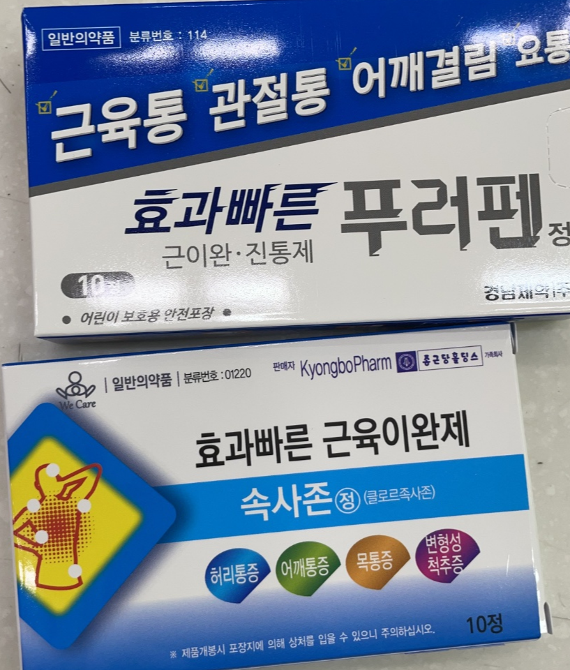 + 근육이완제 까지 쓸 수 있는데 근육통이 있고 몸이 쑤신다면 사용하는 것이 좋다.
