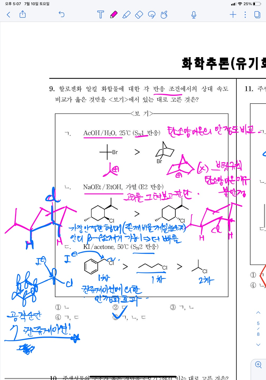 ㄱ. SN1 반응은 속도는 탄소 양이온의 안정도에 달려있다.