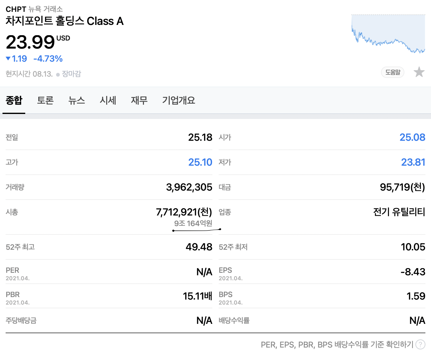 그러면 차지포인트는 주식이 비싼 것인지 알아보겠습니다.