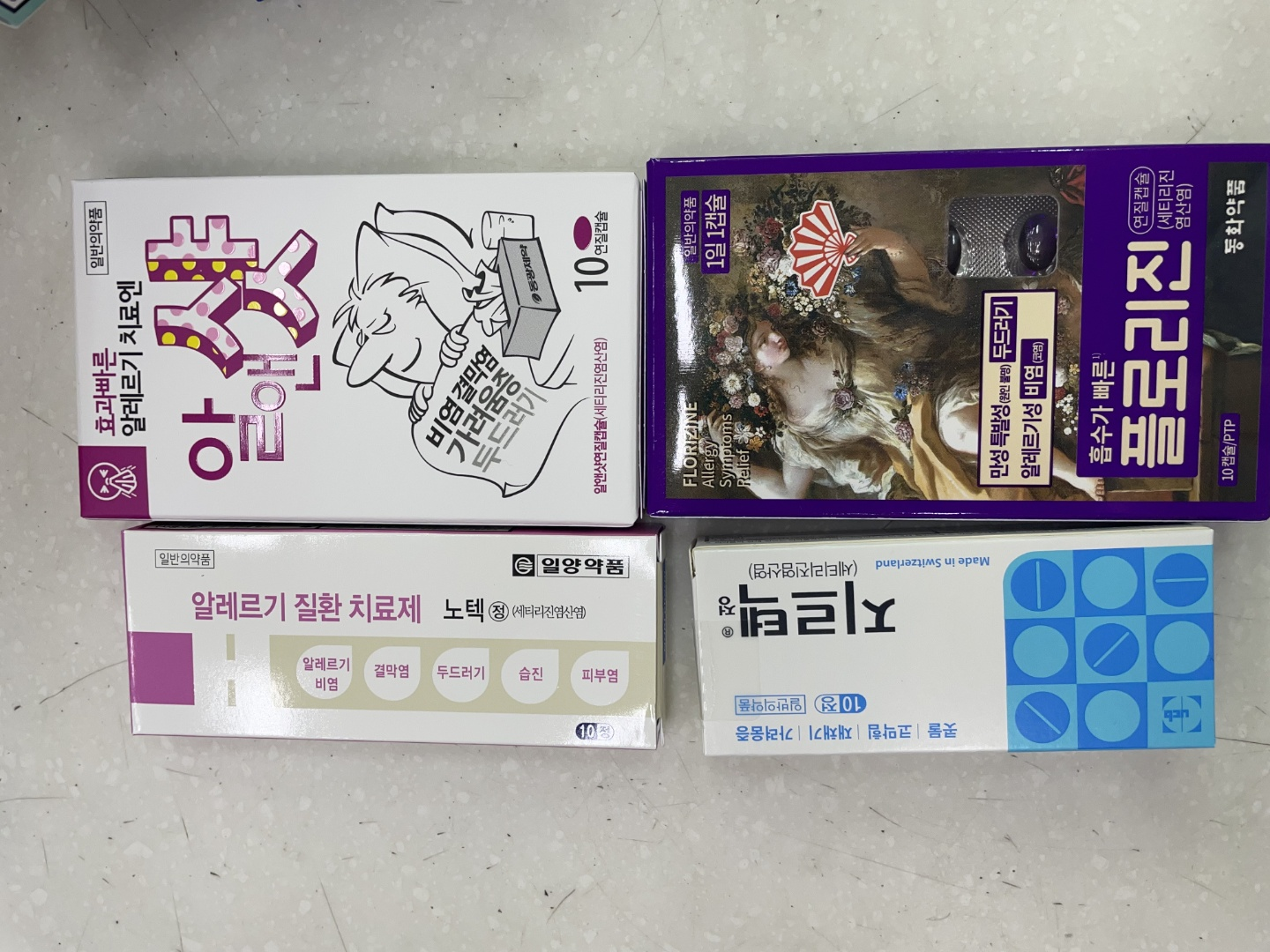 이때에는 항히스타민제인 세티리진, 페니라민, 아젤라스틴 등을 사용하자