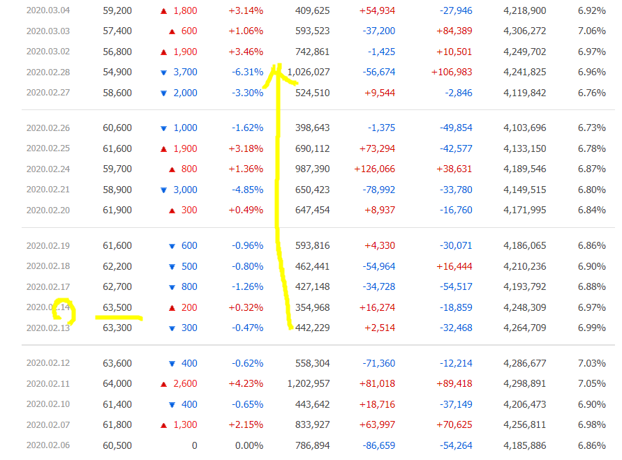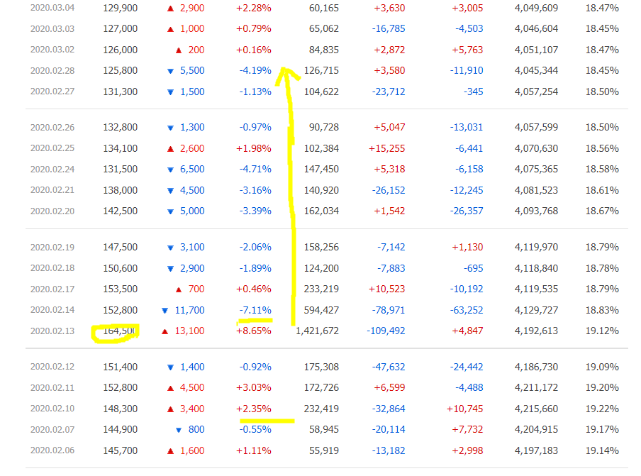 3월 2일을 보면 거래량이 없는데 조금씩 상승한 것을 볼 수 있는데 이는 지금 서울의 아파트 값과 같다.
