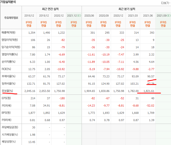 유보율이나 부채비율로 보았을 때에는 괜찮아 보입니다.